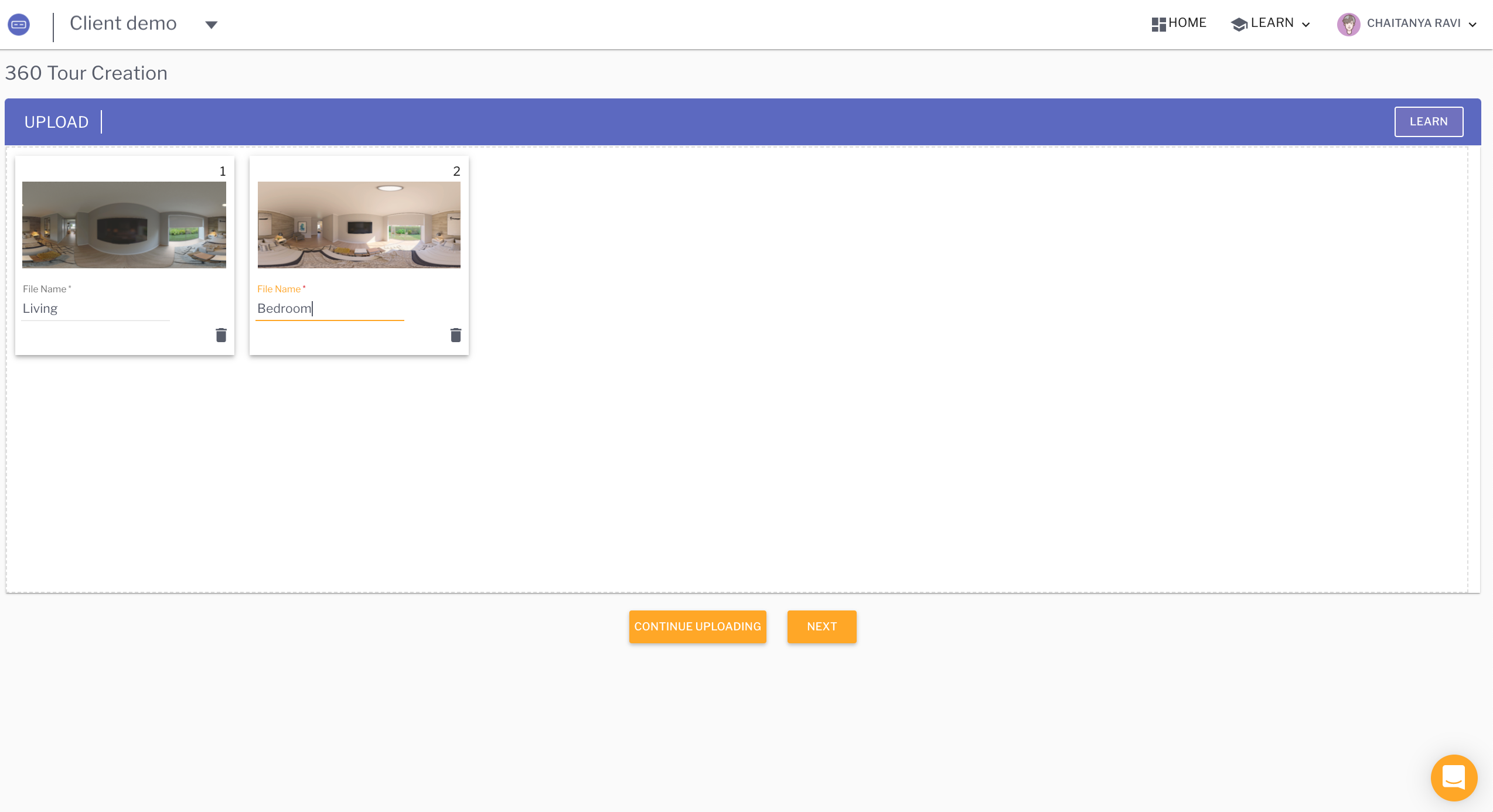 - Upload the 360 panoramas exported from Enscape.