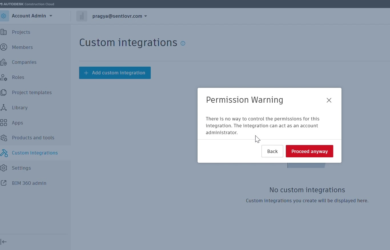 Do all users need to complete the integration setup? No. The integration setup is a one-time task done by the admins of both Sentio and ACC. Once configured, all users in the organization can import models from ACC.