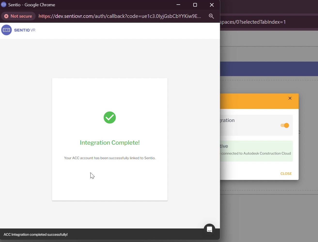 That's it for setup! The two platforms are now synchronized. This only needs to be done once — all users in your organization can now import models from ACC into Sentio.