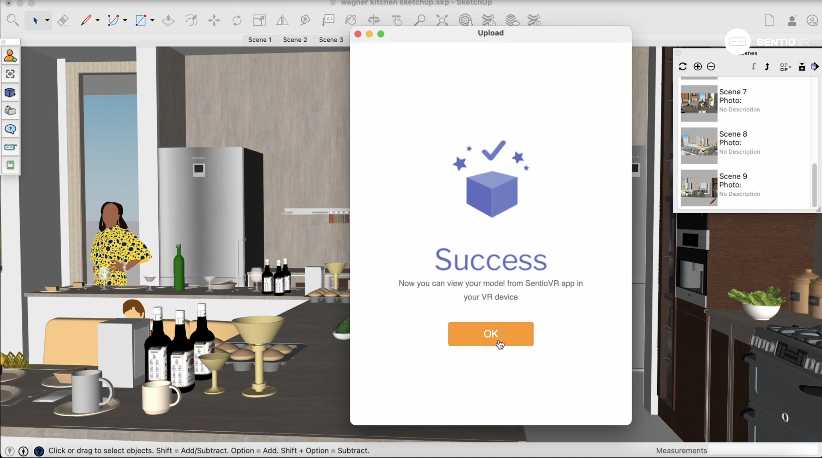 Note: SketchUp scenes are available in VR only when uploading via the plugin (Option 2). If you need scene navigation in your VR experience, use the plugin method.**